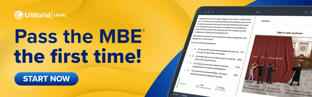 I wish I had gotten UWorld at the beginning! Great mix of real NCBE questions, plus a really clean, intuitive interface. Definitely recommend to rising 3Ls!”